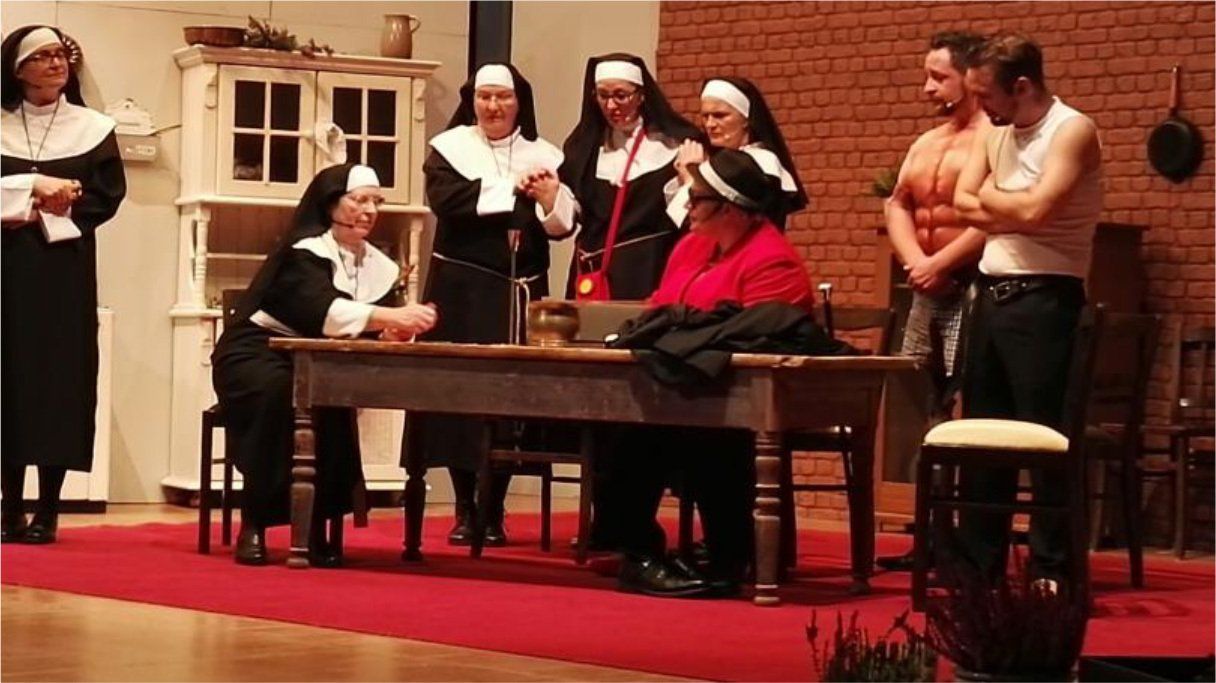 Im Kloster Am Burgberg ist nichts mehr so, wie es mal war. Keine Kirchgänger mehr und das Kloster fällt fast auseinander. Auch die verbliebenen Nonnen wissen langsam nicht mehr, was sie noch machen sollen und vertreiben sich den Tag mit Pokern um Oblaten oder überlegen, wie man das Unternehmen Kloster wieder in Schwung bringen könnte. Allerdings nur, so lange Oberschwester Lucretia nicht in der Nähe ist, die ein strenges Regime führt, ganz nach dem Motto: Früher war alles besser! So lebt es sich ganz bescheiden, bis eines Tages zwei windige Gestalten auftauchen,die eine ziemlich große Klappe und einen dicken Koffer voller Geld dabei haben. Nun geht es plötzlich um alles oder nichts. Pokern ums große Geld, Sein oder Schein und andere Geheimnisse, die an den Tag kommen. Und keiner weiß wo das enden wird!